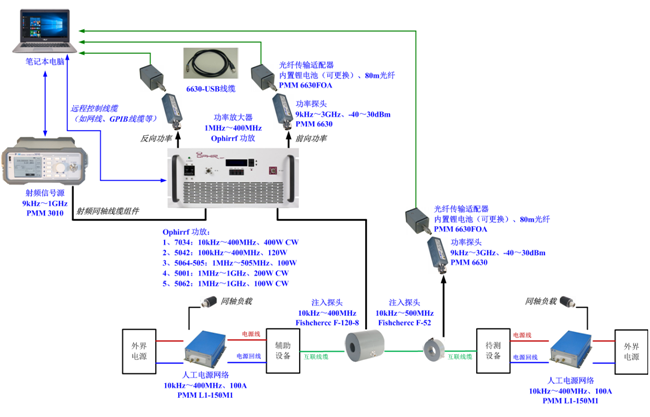 6000A采用去中心的分体式硬件架构,适应不断变化的测试需求,可以根据电流不同而引入不同品牌的功放与注入探头。同时也可根据试验信号的频率以及调制方式,融合多种品牌的射频信号源(如3010、3030)。